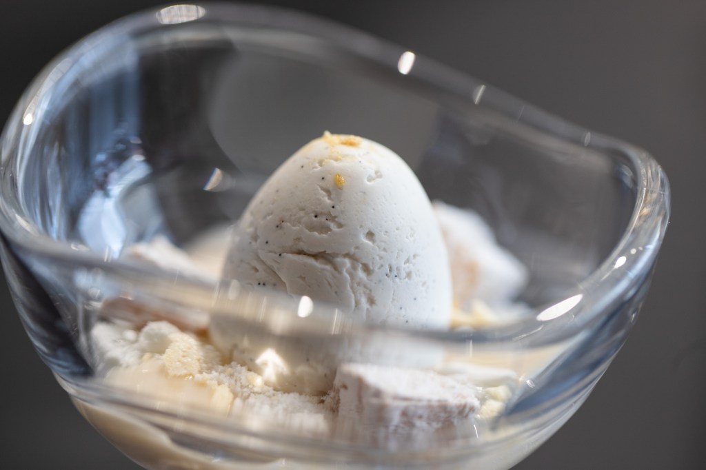 First course: White — lychee, coconut, mexican vanilla creme, rice, mochi. It came in a little bowl and was a delight of flavours and textures. The ice cream might look like the main event, but everything worked together.