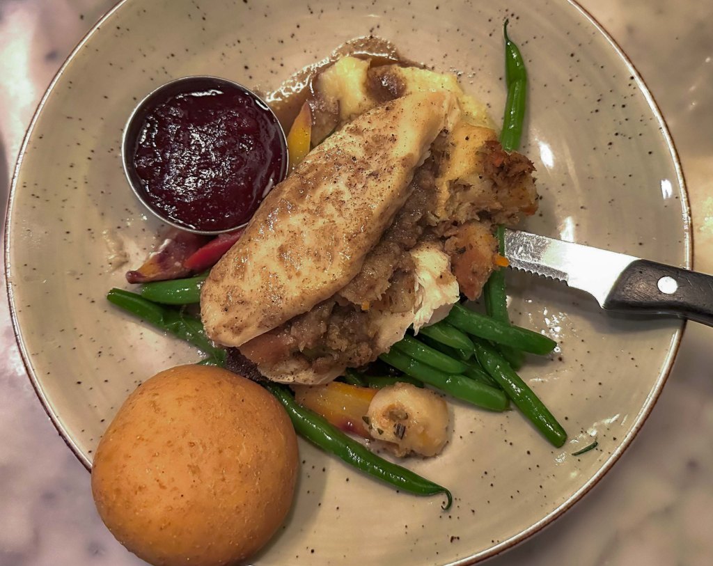 A few days later we checked out the Festive Vegan Dinner at Il Fornello on Danforth (in Toronto). For $24.95 you get oven roasted plant-based chicken stuffed with apple sausage stuffing served with mashed potatoes,